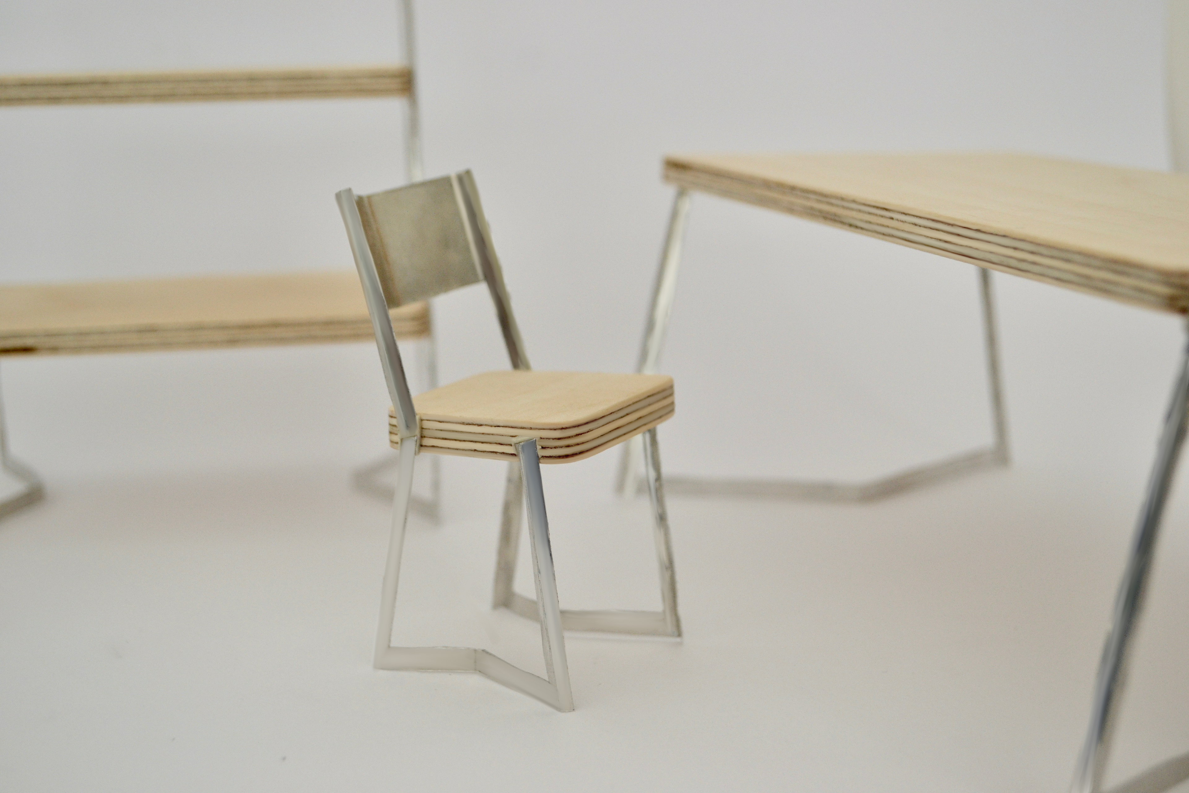 As part of a dining room series, I designed a modular chair made of two contrasting materials: aluminum and wood.